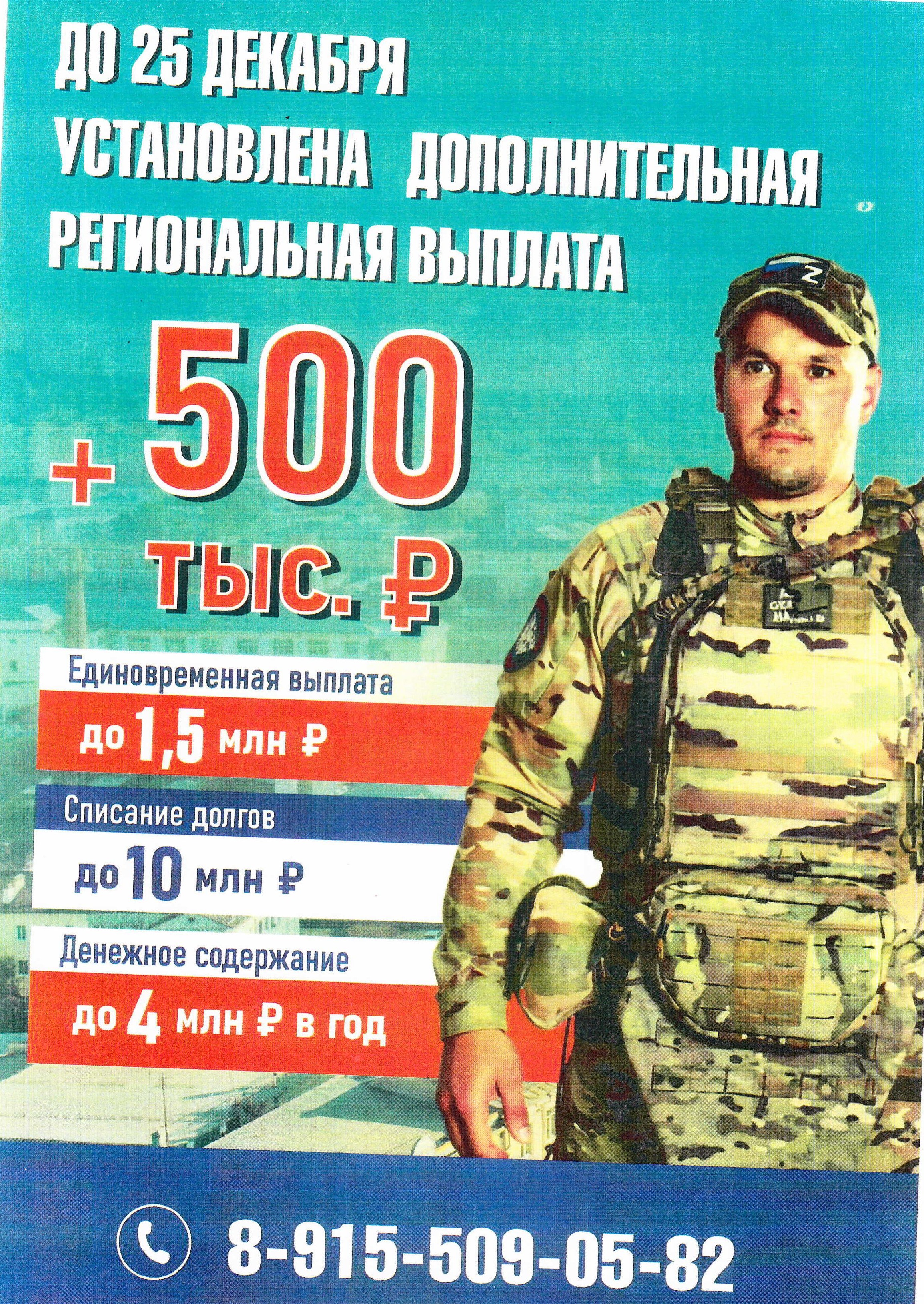 - 1. Единовременная денежная выплата в размере 400 тысяч рублей, заключившим контракт для участия в специальной военной операции.
